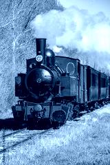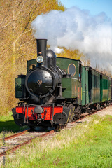 Locomotive à vapeur en campagne, Baie de Somme, Picardie,