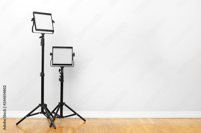 Two led lamps standing on the floor. Video light.