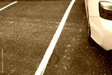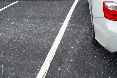 close up on parking lots with salt before snow in winter