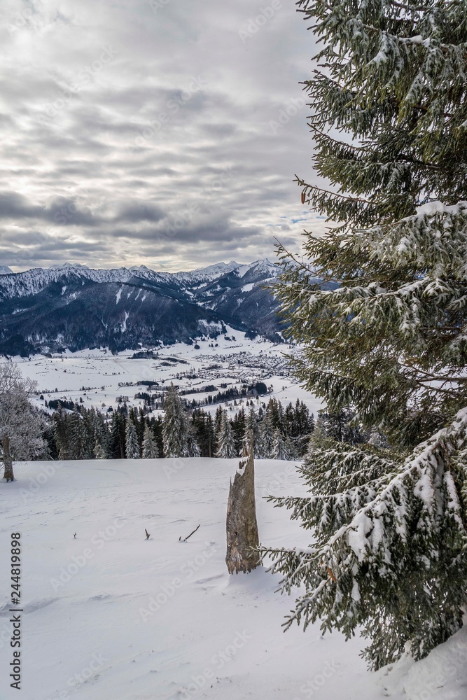 Fantastic winter landscape. colorful sky glowing by sunlight.