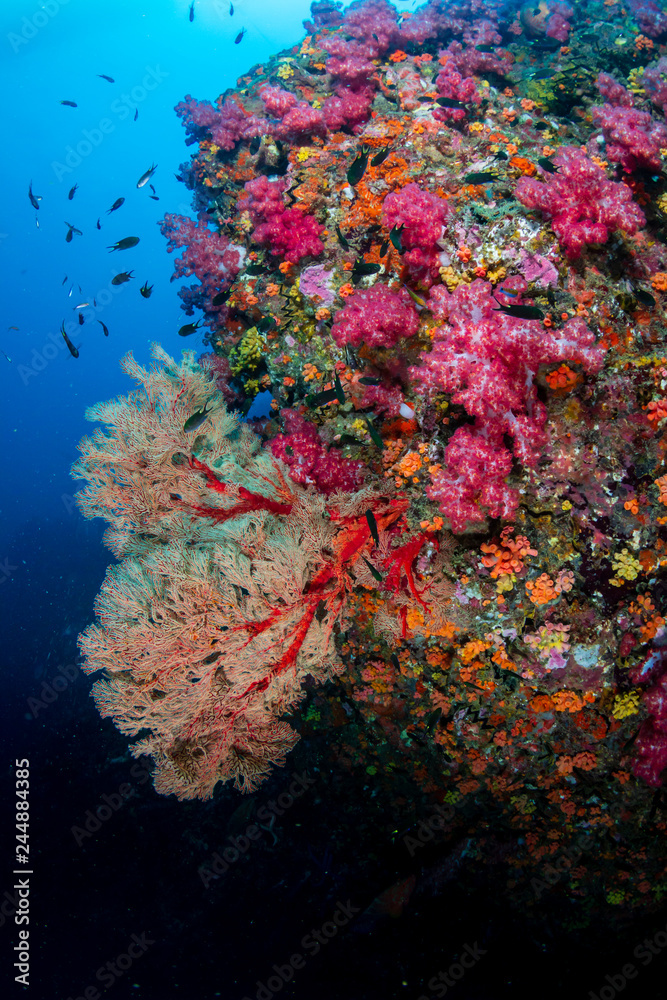 Brightly colored, healthy tropical coral reef (Richelieu Rock, Thailand)