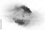 Black powder explosion on white background.Black dust particles splash.