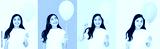 Happy birthday. Balloon party collage. Happy asian girl with balloons isolated on white colorful background. Copy space. Blank template t shirt.