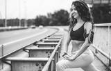 Young woman stretching body after training. Fitness, sport, lifestyle concept