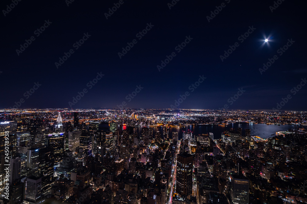 Night panorama of New York City. View at Long Island City and East river