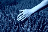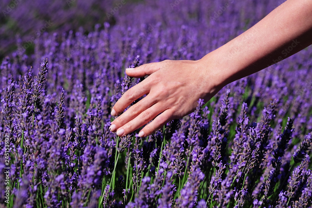 Violet lavender field at soft light effect for your floral background on horizontal web header or banner. Summer season in Provence