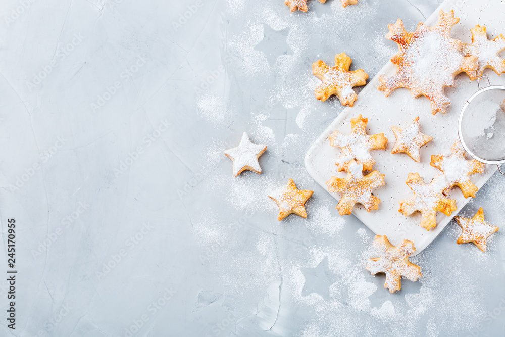 Homemade christmas snowflake cookies on a cozy kitchen table