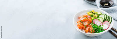 Fresh hawaiian salmon poke bowl for healthy lunch