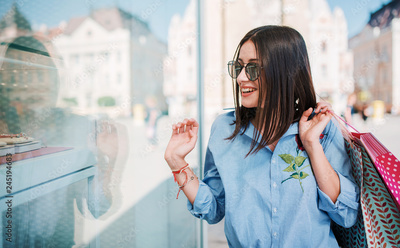 Young woman in shopping looking for presents. Consumerism, fashion, lifestyle concept