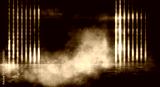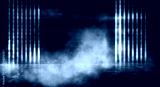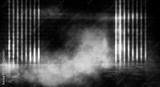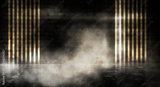 Background of an empty dark-black room. Empty brick walls, lights, smoke, glow, rays