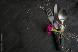 cutlery rustic, used for eating or serving (fork, knife, spoon - set). food background. copy space