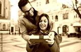 Dating. Young man surprised his girlfriend with a present. Love and relationships concept