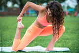Stretching exercises. Young beautiful woman doing fitness outdoors. Sport, fitness, recreation concept