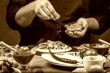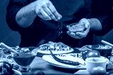 Cooking food on the street. Fast food. Hands preparing mexican tacos. Tasty mexican cuisine