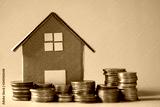 House model around with stacking coins money on blue background. Saving and investment to real estate concept. -image.