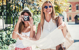 Young tourists enjoying in vacation, having fun together. Concept of tourism