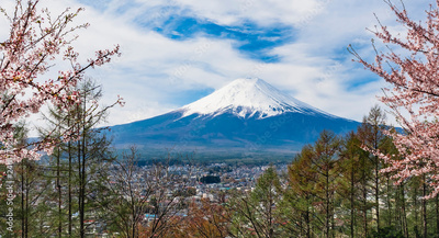 Mountain Fuji Sakura tree cherry blossom Japan spring season