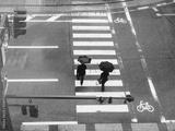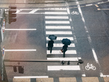 People walk on street Aerial view crosswalk Traffic sign in Raining day