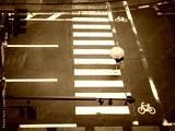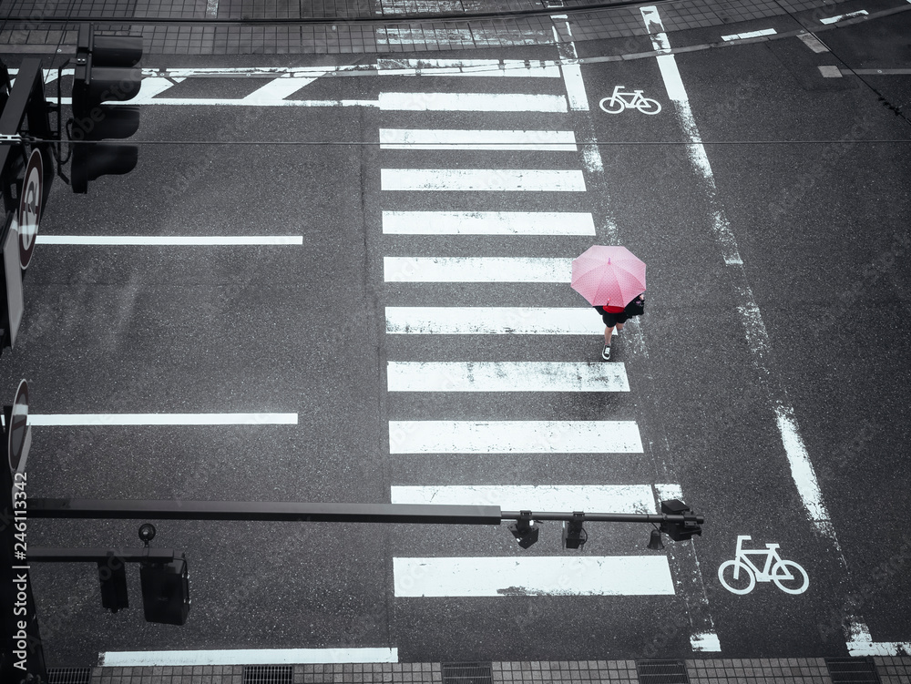 People walk on street Aerial view crosswalk Traffic sign Raining day