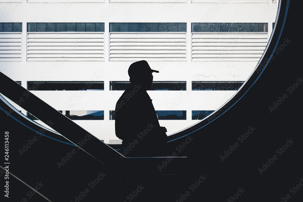 Silhouette man by the window People stand indoor building