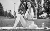 Resting after training. Young woman doing fitness outdoors. Sport and recreation concept