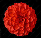 Red flower dahlia on the black background isolated with clipping path. Closeup. For design. Dahlia.