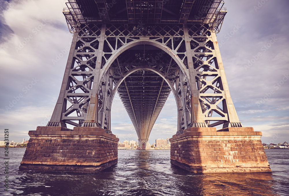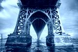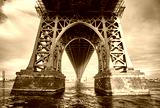 Under the Williamsburg Bridge at sunset, color toned picture, New York City, USA.