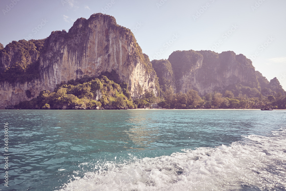 Krabi Province coast on a sunny morning, color toning applied, Thailand.