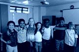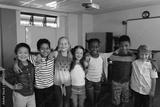 Happy school kids standing in classroom