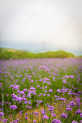 Violet verbena flowers on blurred background with sunshine in the morning