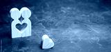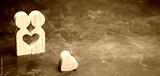 A miniature couple in love and a heart near them. The concept of family problems and loss of feelings for your loved one. Consultation family psychologist. Rupture / divorce. Selective focus