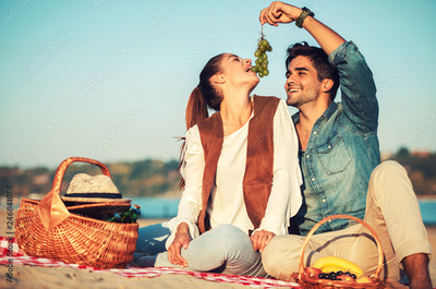 Beautiful young couple having fun on the beach. Lifestyle, love, dating, vacation concept
