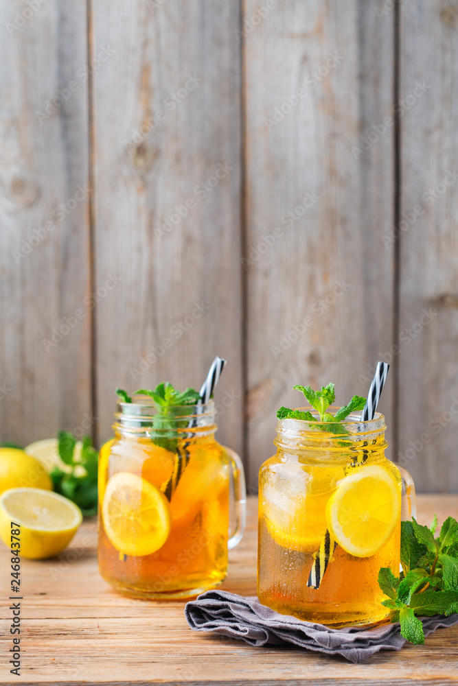 Lemon mint iced tea cocktail refreshing drink for summer days