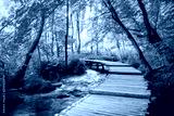 Beautiful wooden path trail for nature trekking with lakes and waterfall landscape in Plitvice Lakes National Park, UNESCO natural world heritage and famous travel destination of Croatia.