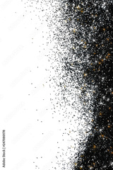 Bright beautiful shining black glitter on white background, top view. Space for text