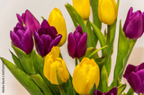 Fioletowe i żółte tulipany, bukiet tulipanów