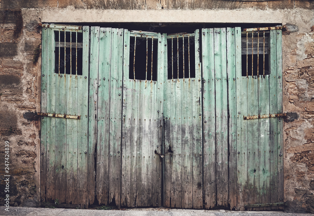 Old weathered wooden door, color toned picture, Mallorca, Spain.