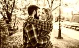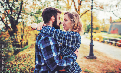 Meeting in the park. Romantic couple having fun in the park. Love, dating, romance