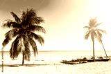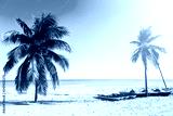 The tropical beach of Varadero in Cuba with sailboats and palm trees on a summer day sunset with turquoise water. Vacation background.