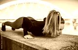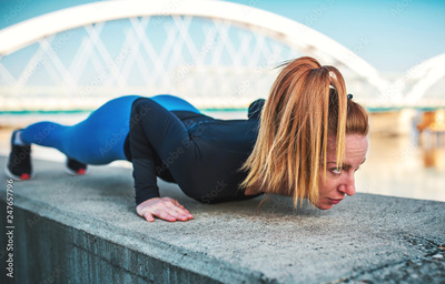 It's time for exercise. Young sportswoman doing push ups. Sport, fitness, street workout concept