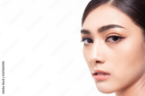 Portrait charming beautiful woman face. Attractive beautiful young asian woman has nice skin face. Gorgeous girl has natural makeup. She looks confident with bright skin isolated on white, copy space