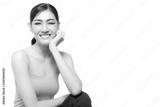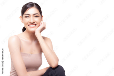 Portrait charming beautiful young woman. Attractive beautiful girl feel happy and relaxed with smile face. Gorgeous asian woman has a lot of confident. She has good health and nice skin. copy space