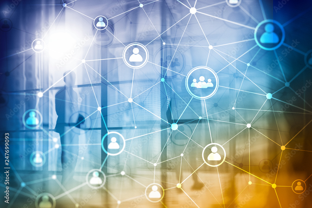 Double exposure people network structure HR - Human resources management and recruitment concept.