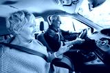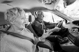 Senior couple driving a car
