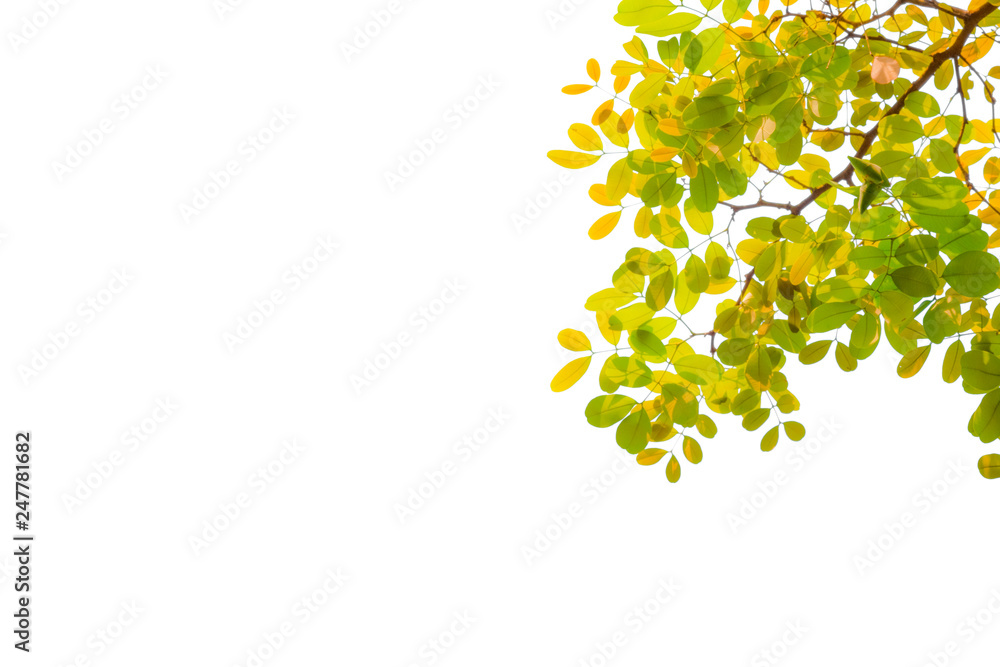 Isolated of beautiful tree branch with colorful leaf on white background. Clipping path and copy space- Image.