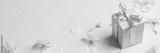 pink gift surrounded by Apple flowers. gentle background, copy space. present for mother's day, spring, Valentine's day, women's day