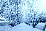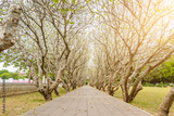 Tunnel of dry Plumeria Tree or Frangipani tree with walking way
