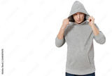 Template mens hoodie sweatshirt long sleeve isolated on white background. Man in blank sweatshirt hoody with copy space and mockup for design logo print, Front view. Middle age man