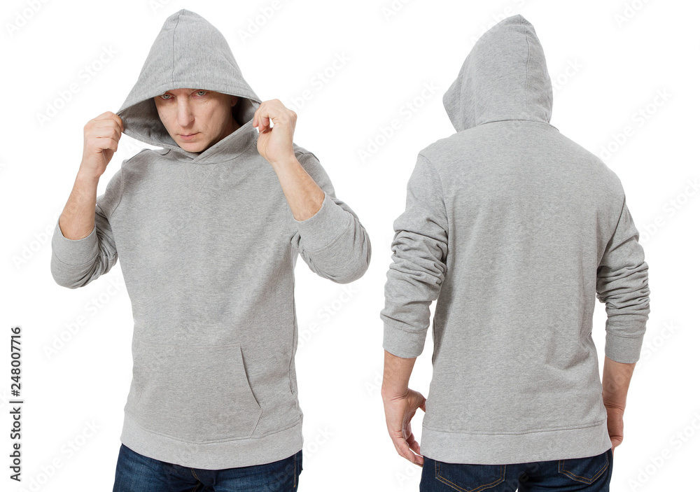 Man in template mens hoodie sweatshirt isolated on white background. Man in blank sweatshirt hoody with copy space and mockup for design logo print, Front and back view. Middle age man