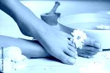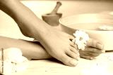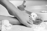 The picture of ideal done manicure and pedicure. Female hands and legs in the spa spot.